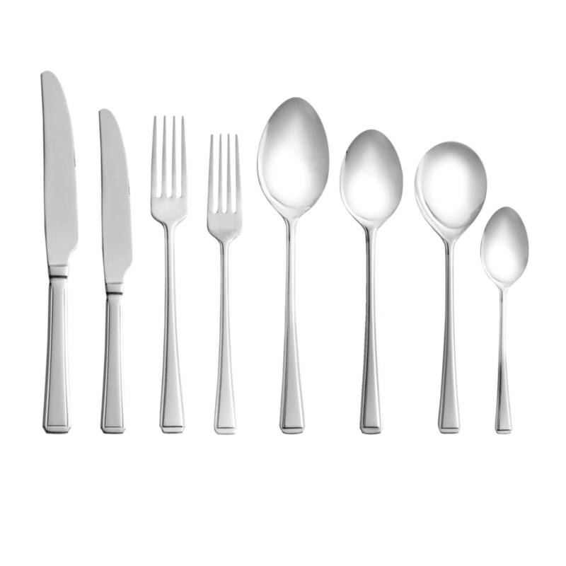 Couverts en acier inoxydable 18/10 finition polie, avec des lignes graphiques marquées pour créer une atmosphère intemporelle. Un design très caractéristique. Lavables au lave-vaisselle et vendus par 12.