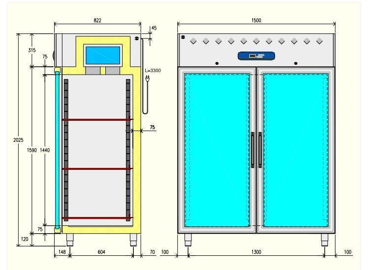 - Pour produits délicats (ex. pâtisseries, viennoiserie, etc.) possibilités d'activer la fonction (dans le microprocesseur) 2 niveaux de régulation hygrométrique.