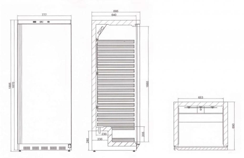 - Livré avec 3 grilles (très robustes) GN 2/1 (651x510 mm), réglables ainsi que grille de fond (651x380 mm).