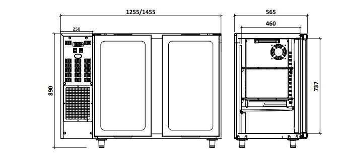 Arrière Bar | 2 Portes Vitrées| Inox | 375 Litres | 1455x565x(h)890/905mm