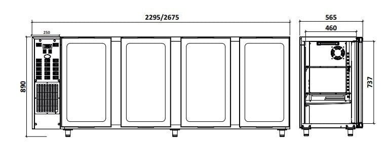 Arrière Bar | 4 Portes Vitrées | 783 Litres | 2675x565x(h)890/905mm