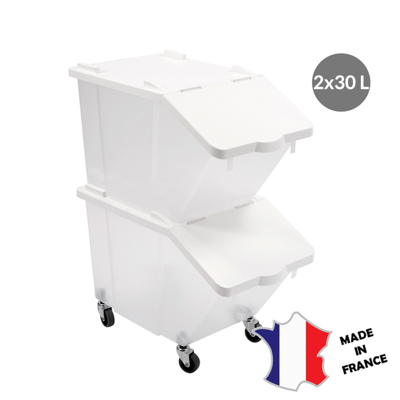 Bacs à ingrédients 30 L + couvercles + 4 roues | Lot de 2 | 565(l)x315x690mm