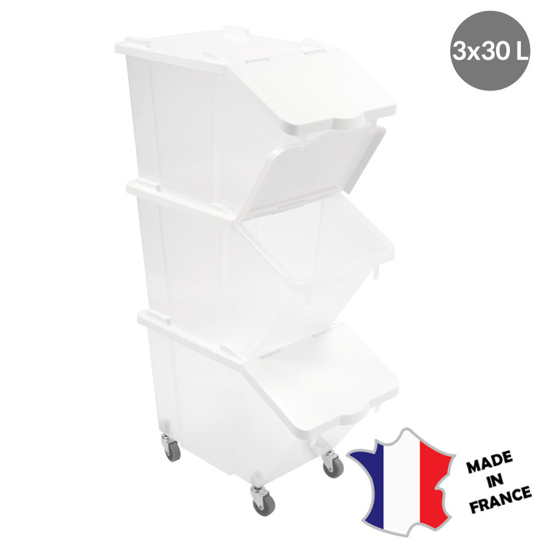 Bacs à ingrédients 30 L + couvercles + 4 roues | Lot de 3 | 565(l)x315x990mm