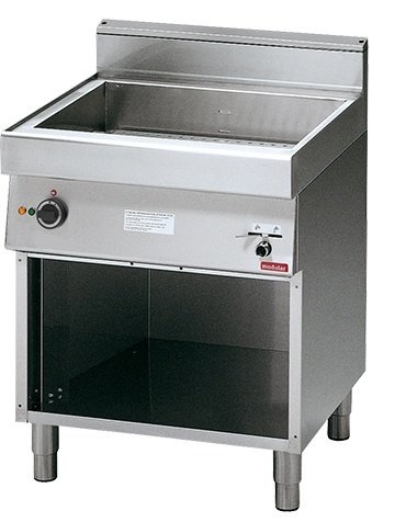 électrique, pour des bacs GN 1 x 1/2 avec profondeur jusqu'à 15cm, a double paroi, robinet et tuyau de vidange encastrés , filtre égouttoir en inox perforé au-dessus de la sole plate avec résistance encastrée, thermostat à opération continue avec commutateur marche-arrêt et voyant de contrôle