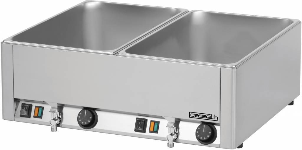 Bain-Marie Double | 2x GN 1/1 | 150mm | 2 Robinets d'Evacuation d'Eau | 660x540x(H)220mm