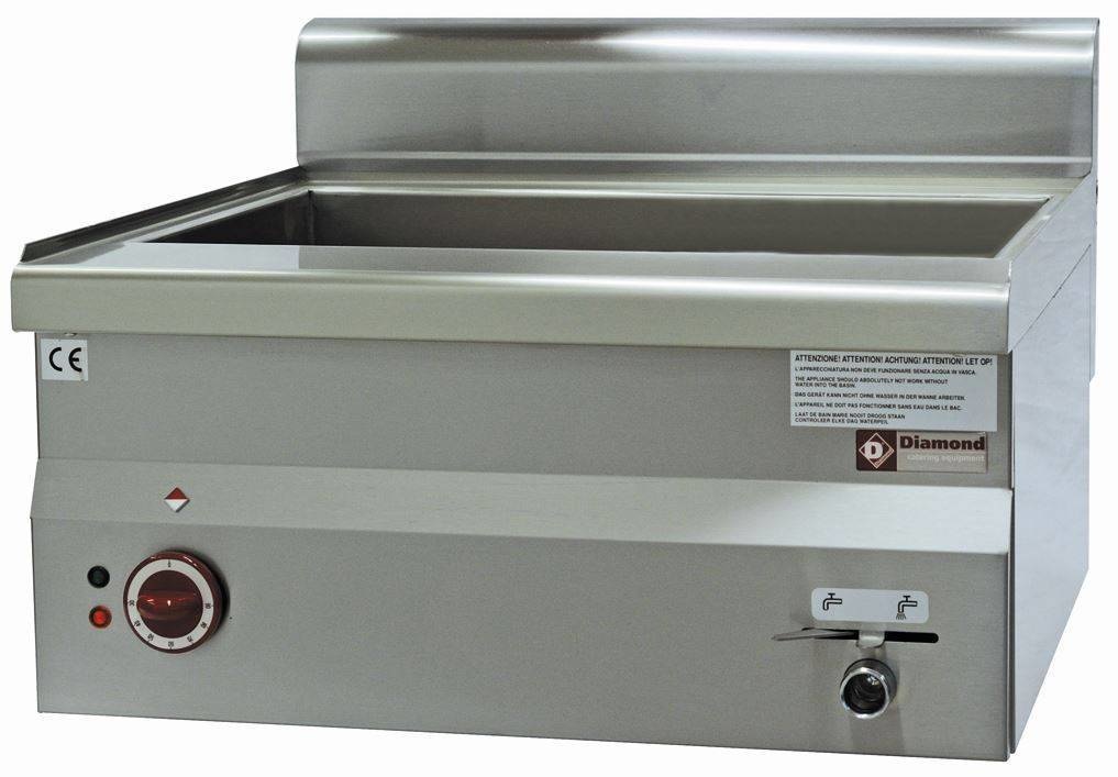 Chauffage électrique, par résistances blindées en acier inox, placées en dessous du fond de la cuve, à l'extérieur. Interrupteur ON/OFF, régulation de la température de 30°C à 90°C, par thermostat.