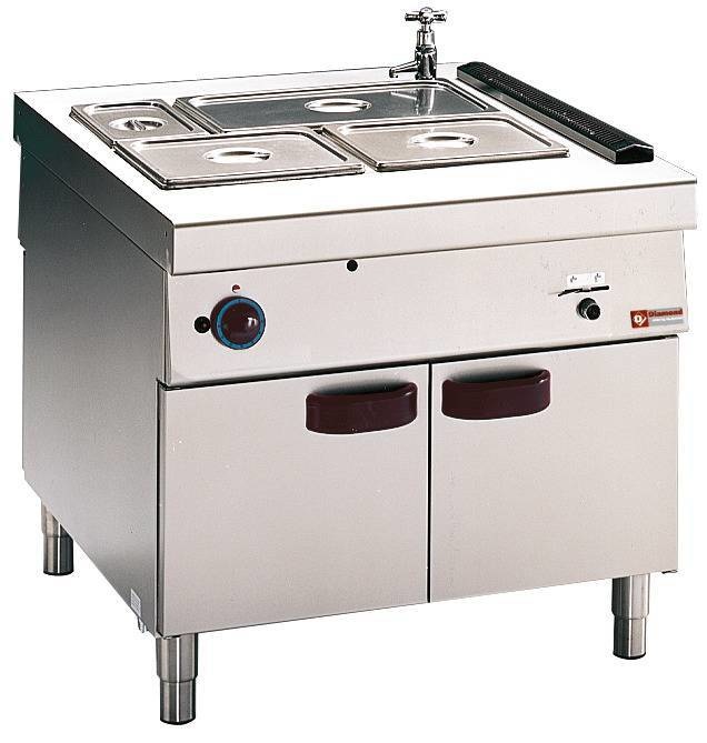 Bain-Marie | Gaz | 2x GN 1/1 + 2x GN 1/3 | Support Ouvert "Traversant Central" 6kW | 900x1100x(h)850mm