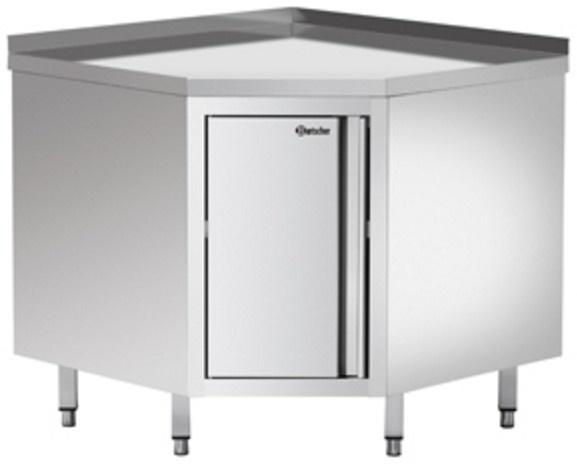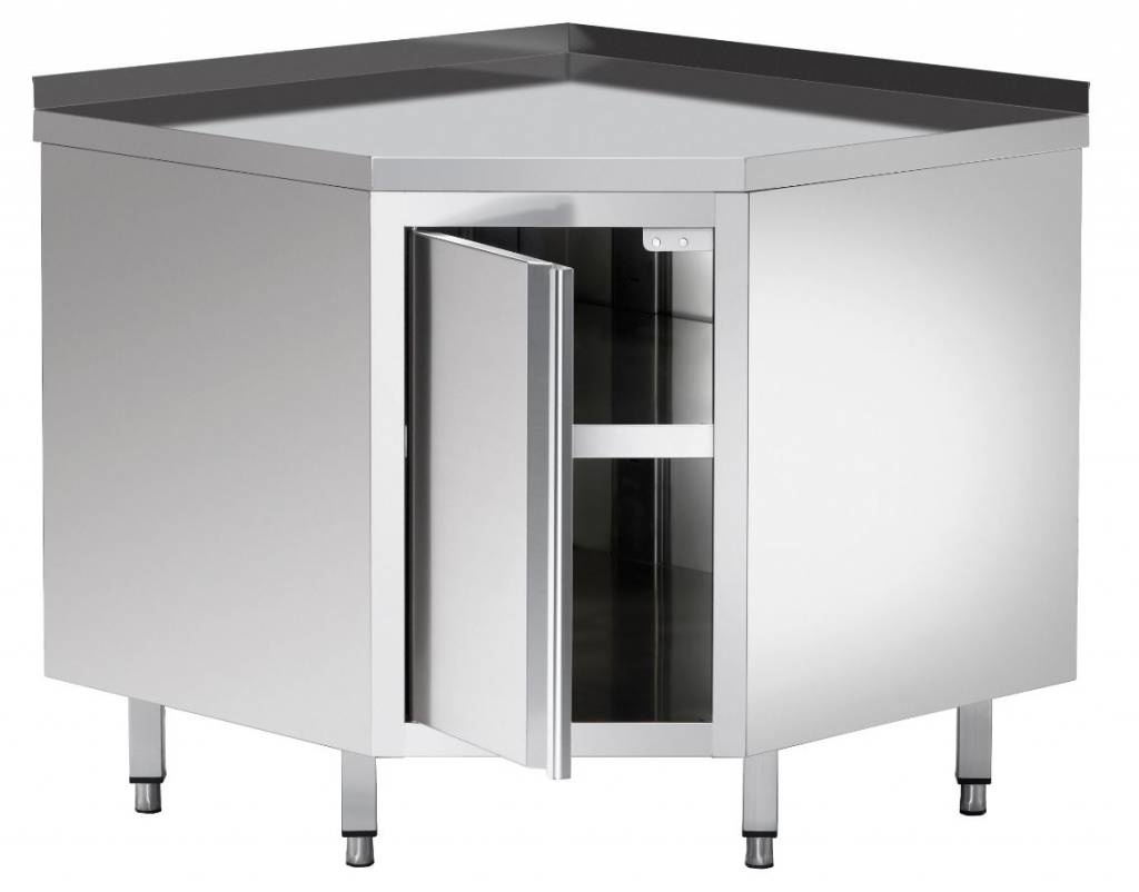 Armoire D'Angle Inox + Bord 40mm + Étagère Intermédiaire - 900x900x850-900(h)mm