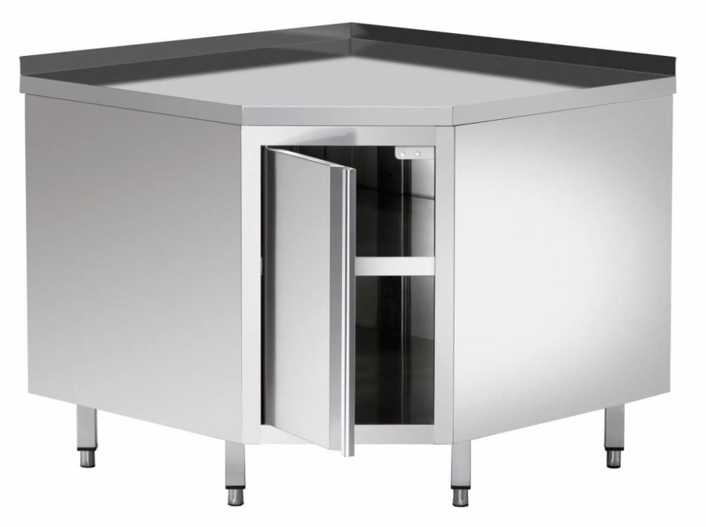 Armoire D'Angle Inox + Bord 40mm + Étagère Intermédiaire - 1000x1000x850-900(h)mm