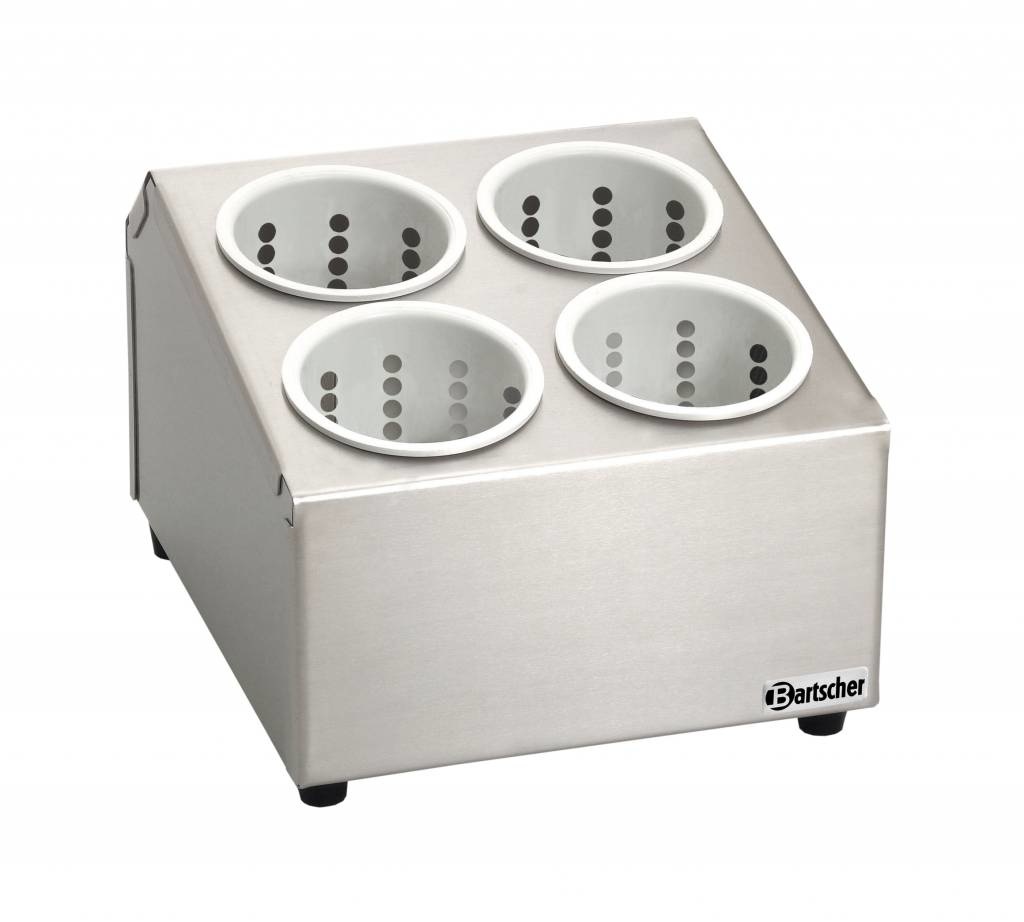Bac à Couverts Inox - Avec 4 Récipients Synthétique Blanc - 265x305x200(h)mm