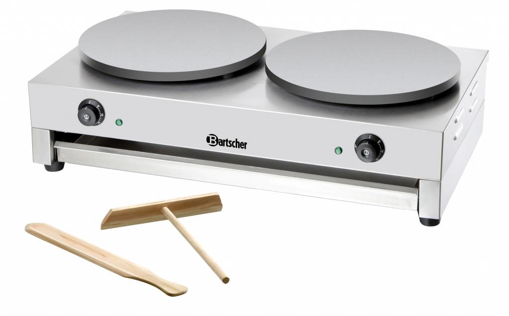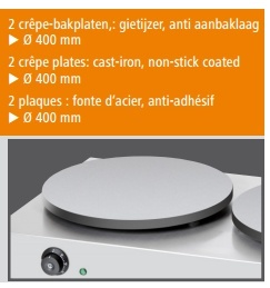 Crêpière Crépe Inox - 2 Plaques Anti-Adhésif Ø400mm - 2x 3kW - 870x510x246(h)mm