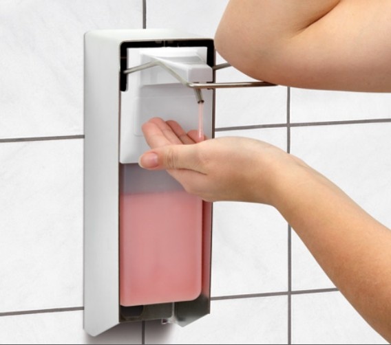Pour un prélèvement hygiénique de savons liquides courants dans le commerce avec commande à une main ou avec le coude