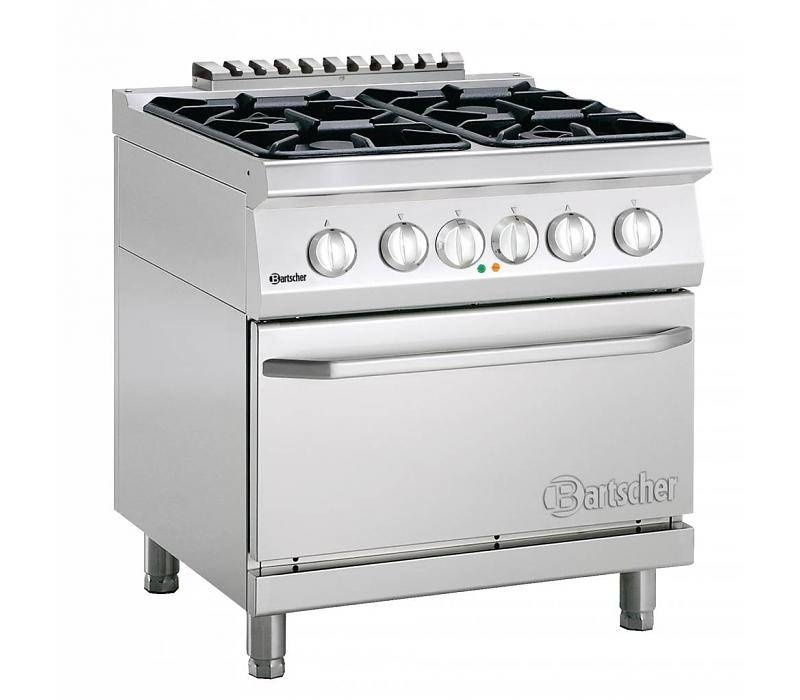 Fourneau à Gaz | 4 Feux | avec Four Électrique GN2/1 | 400V | 800x700x850-900(h)mm