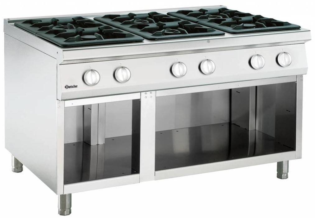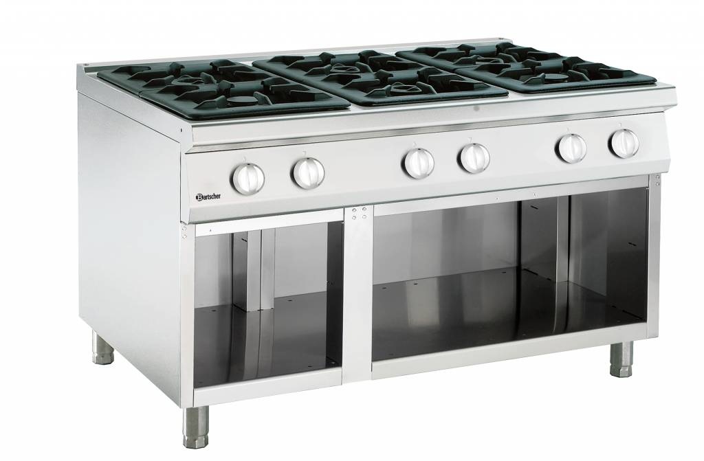 Fourneau à Gaz 6 Feux Vifs + Armoire Ouverte - Série 900 - 1350x900x850-900(h)mm