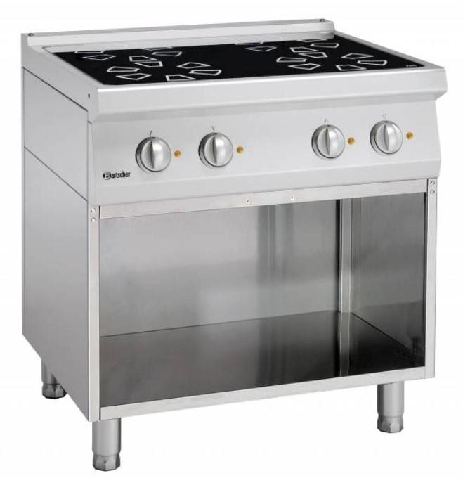 Fourneau Vitrocéramique Inox - 4 Zones Chauffantes - Sur Armoire Ouverte - 800x700x850-900(h)mm