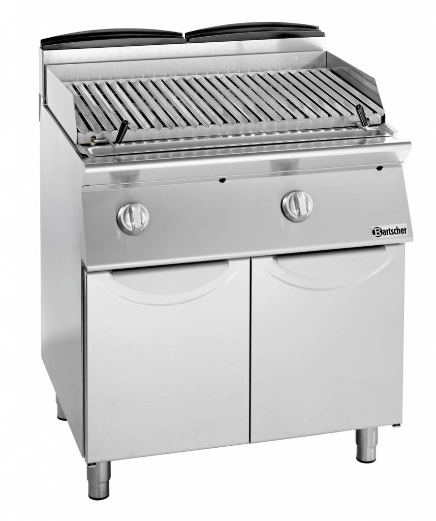 Grill à Pierres De Lave à Gaz Inox + Sur Armoire + Grill En V - 16kW - 800x700x850(h)mm