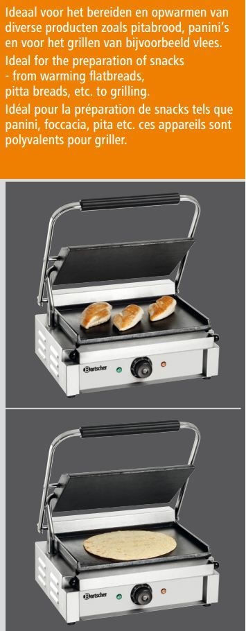 Grill De Contact Électrique 'Panini' - Lisse/Lisse - 2200W - 410x370x200(h)mm