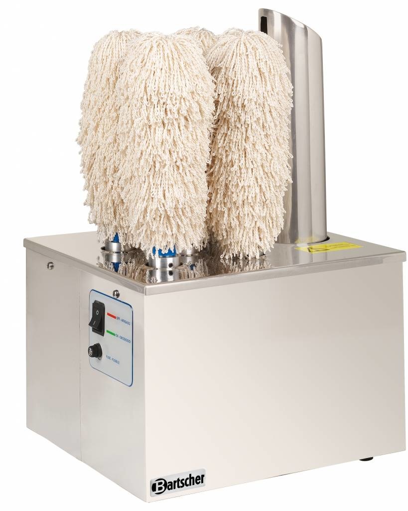 Machine à essuyer et polir les verres5 rouleaux rotatifs, appuyés par des souffleries d‘air chaud,