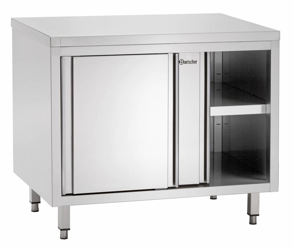 Meuble Inox Avec Portes Coulissantes - Étagère Intermédiaire Ajustable - 1800x700x850-900(h)mm