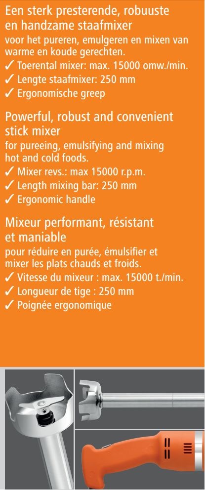 Mixeur Plongeant 250W - Boîtier Orange Synthétique - Tige 250(L)mm
