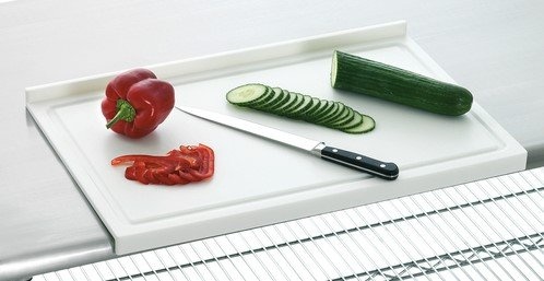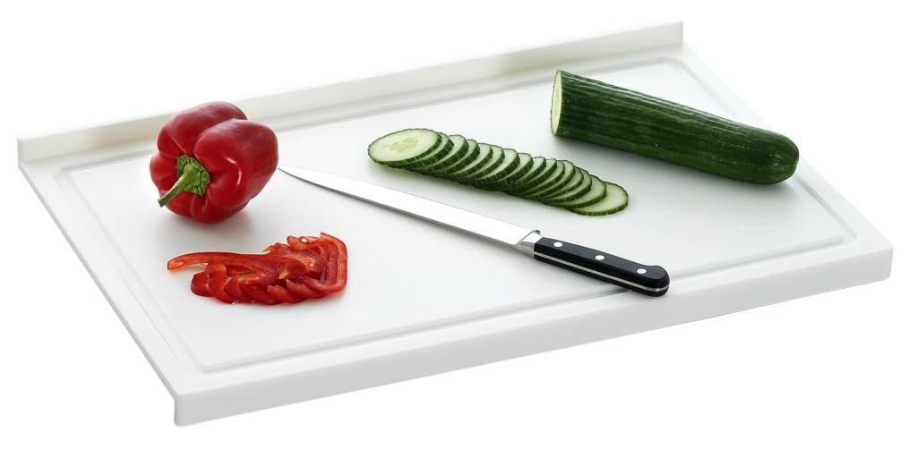Planche à Découper + Bord d'Arrêt - Plastique Blanc - 580x375x45(h)mm