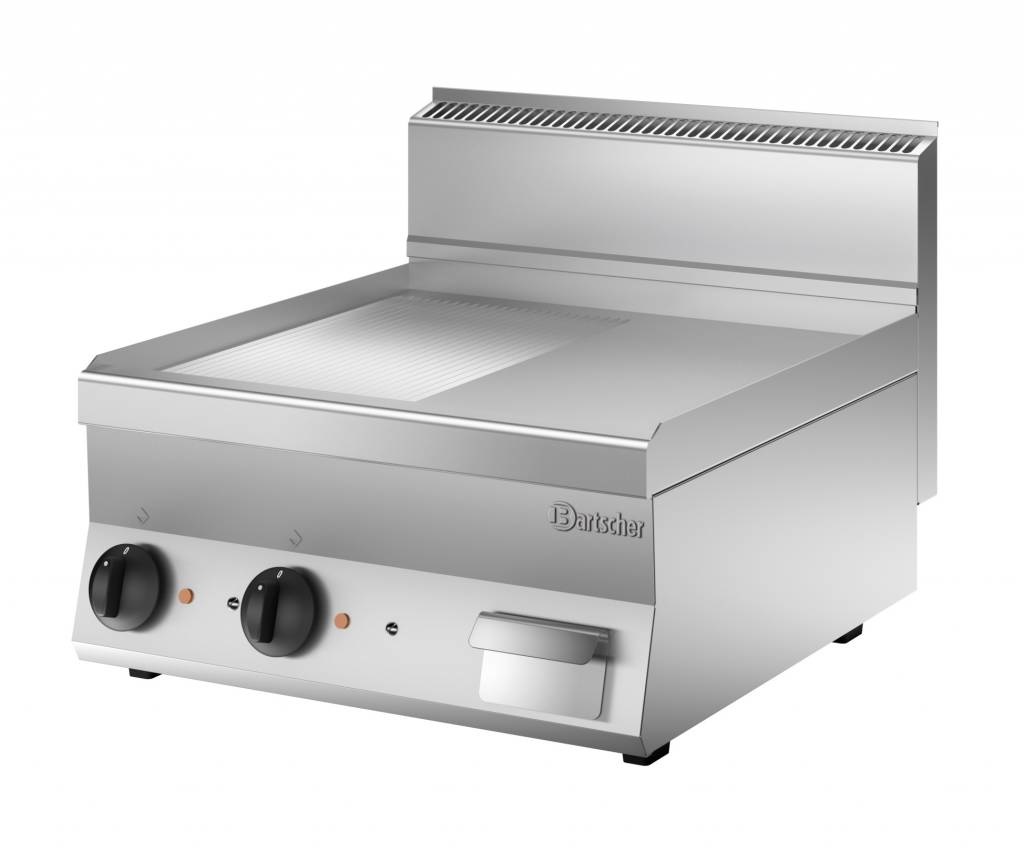 Plaque à Griller Inox - 7,8kW - 1/2 Lisse - 1/2 Rainurée - 600x650x295(h)mm
