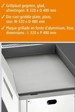 Plaque grillade à gaz GDP 320G, lisseAcier inoxydable 18/10