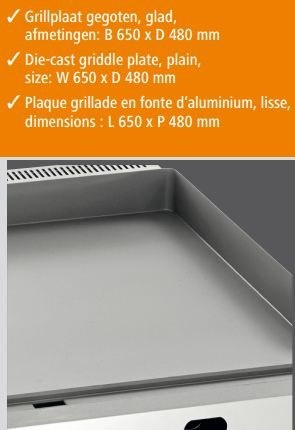 Plaque grillade à gaz GDP 650G, lisseAcier inoxydable 18/10
