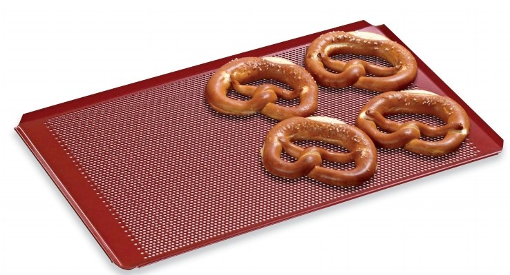 Plaque Perforée GN 1/1 - 4 Bords à Plis Inclinés - Revêtement Silicone - 530x325x10(h)mm