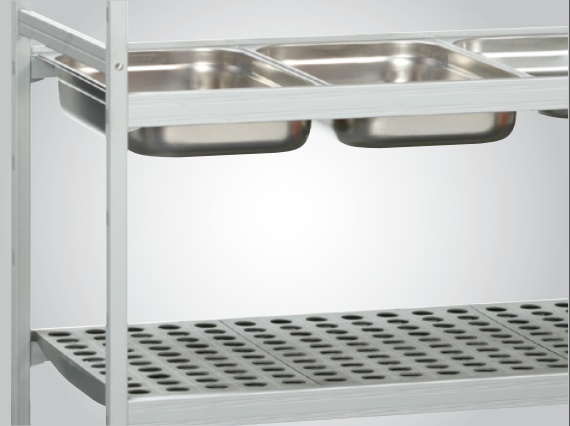 - La possibilité de remplacer les rayons par des récipients GN de toutes tailles offre un deuxième usage pratique.