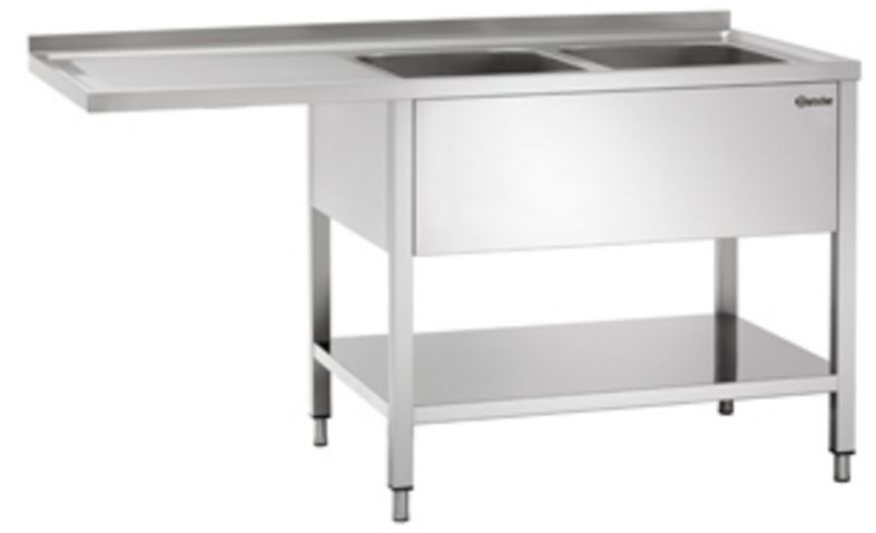 Table de Prélavage Inox Poli LUXE - 2 Bacs- Égouttoir à Gauche - 1600x700x850-900(h)mm