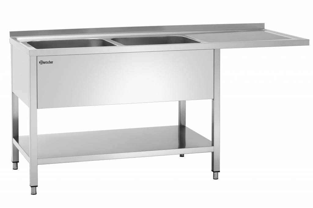 Table de Prélavage Inox Poli LUXE - 2 Bacs + Passage Lave-Vaisselle à Droite - 1800x700x850-900(h)mm