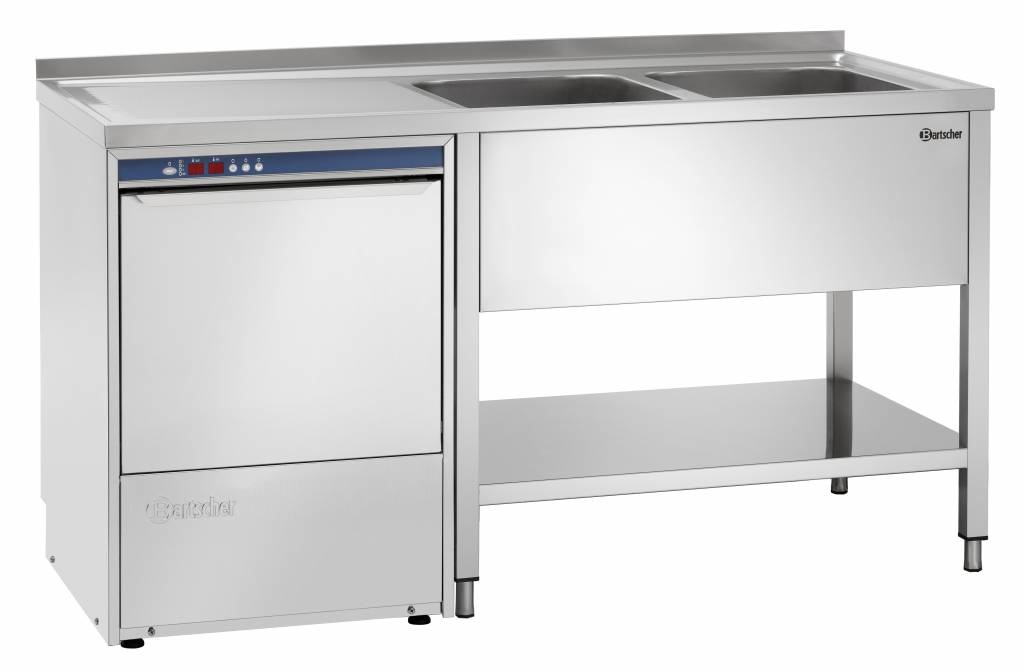 Table de Prélavage Inox Poli LUXE - 2 Bacs 400x500x240(h)mm - Dimension Totale 1600x700x850-900(h)mm