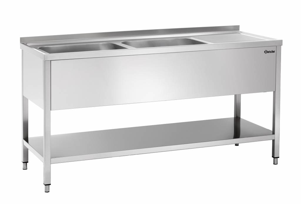 Table de Prélavage Inox Poli LUXE - 2 Bacs 500x500x250(h)mm - Égouttoir à Droite - 1600x700x850-900(h)mm