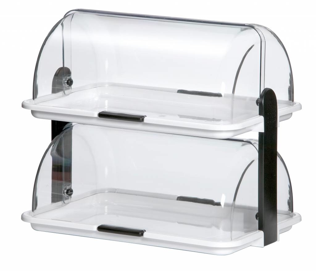 Vitrine Buffet Double - Synthétique Blanche - Couvercle Plexiglas - 470x315x415(h)mm
