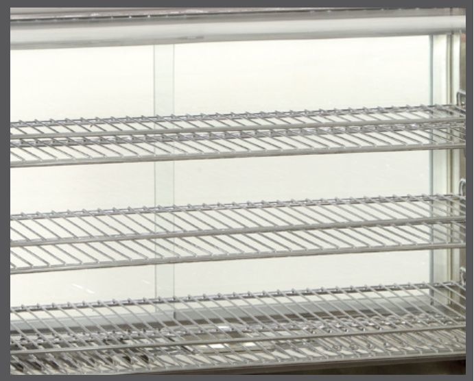 Vitrine Chauffante Inox | 3 Grills | Portes Coulissantes | Éclairage LED | 860x570x670(h)mm