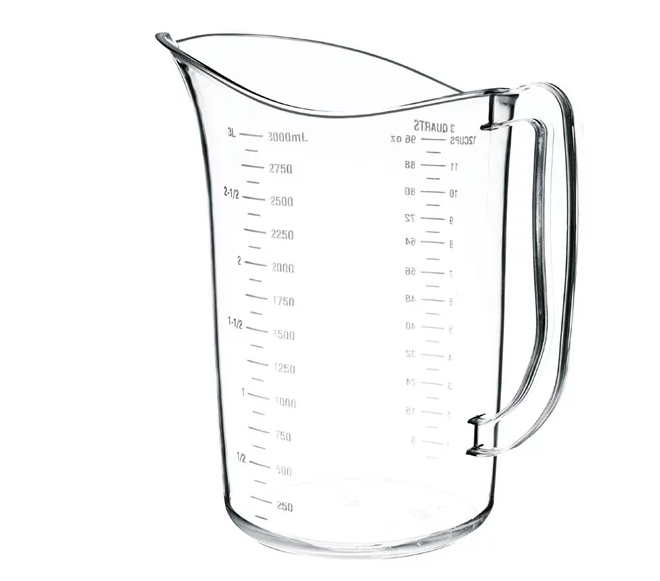 Le doseur en polycarbonate de Vogue permet de mesurer les liquides rapidement et avec précision. Avec son bec verseur facile, sa construction résistante aux chocs et ses marques claires en ml et en onces liquides, le pot convient à toute utilisation dans la cuisine. Ustensile de cuisine simple mais efficace, le pichet est adapté au micro-ondes et au lave-vaisselle. Marquages en ml / L et oz liquide.