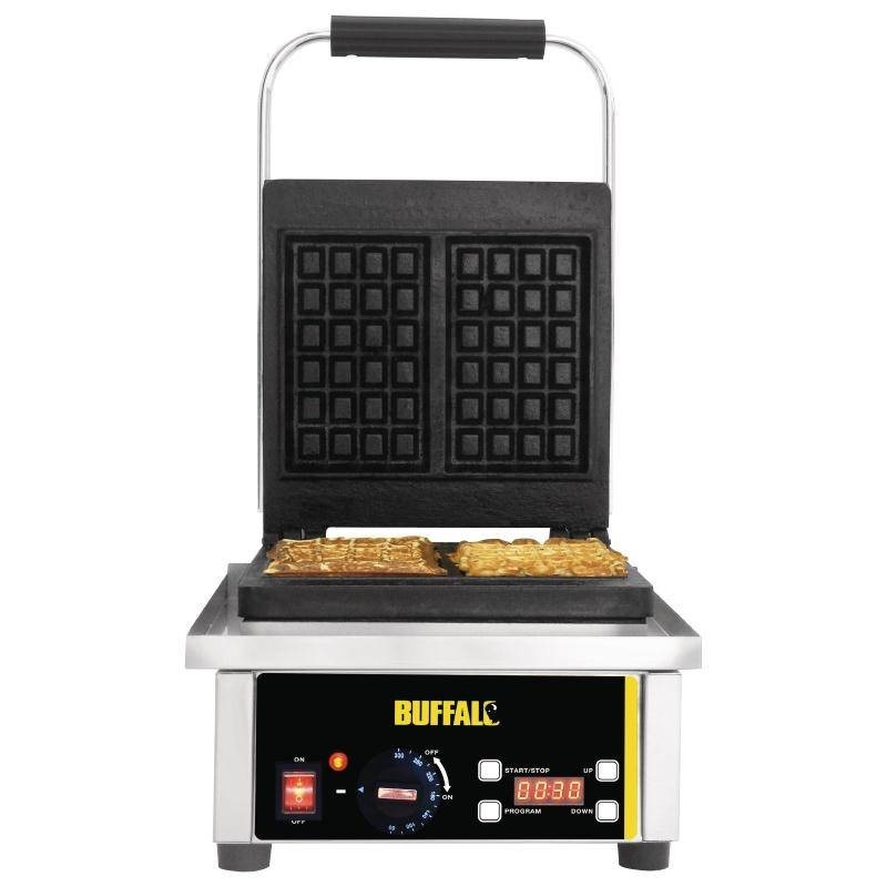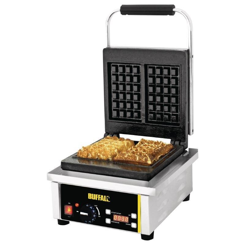 Gaufrier compact en acier inoxydable avec plaques en fonte. Pour confectionner des gaufres de 160 x 100mm.