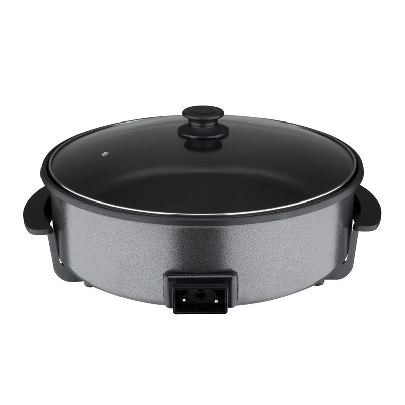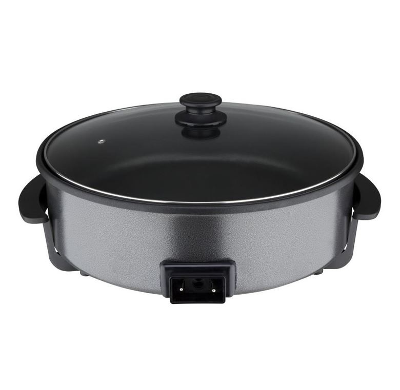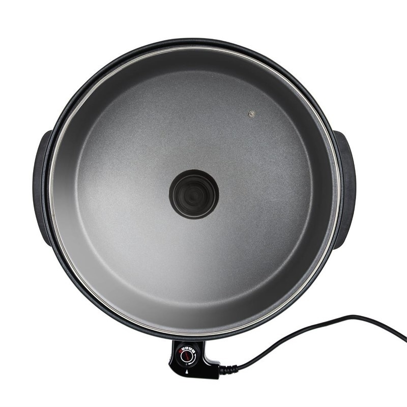 Pôele électrique multi-usages de 90mm de profondeur permet de cuire les aliments de différentes façons sans plaque de cuisson. La polyvalence de cet appareil de cuisson est parfaitement démontrée par sa capacité à frire, griller, mijoter et porter à ébullition. Parfait pour cuire des pizzas, paëllas, omelettes, steaks et bien d'autres. Résistante, facile à nettoyer et ranger, la poêle électrique peut être branchée et chauffer en quelques minutes, ce qui en fait un appareil de cuisson d'appoint pratique en cas de forte affluence.