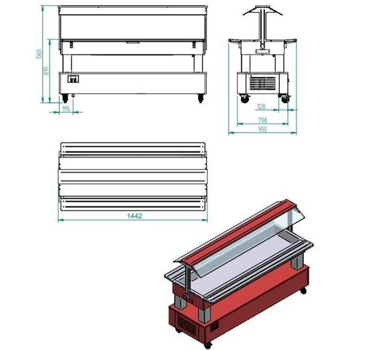 Buffet Bain Marie |4 x 1/1 GN | Brun Foncé | 1440x660(950)xh1370