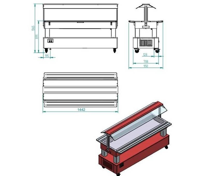 Buffet Bain Marie | Chauffant | 4 x 1/1 GN | Couleur Wengé | 1440x660 (950) xh1370