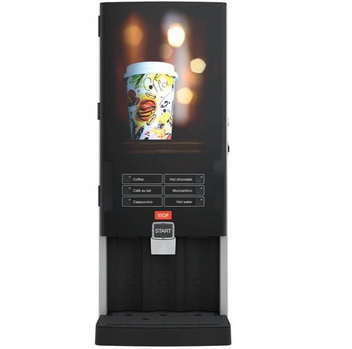 Bolero Turbo 331 se concentre entièrement sur l'utilisateur final. Les boutons poussoirs clairs garantissent que chacun peut rapidement et facilement prendre son propre café. Le panneau avant éclairé par des LED attire l'attention et fait de ces machines une solution idéale pour les solutions en façade.