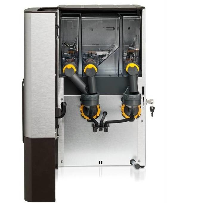 Automatique pour les ingrédients instantanés, mis par tasse. Pour les emplacements avec et sans raccordement d'eau. La machine est équipée d’un bac collecteur en plastique et d’un programme de rinçage.
