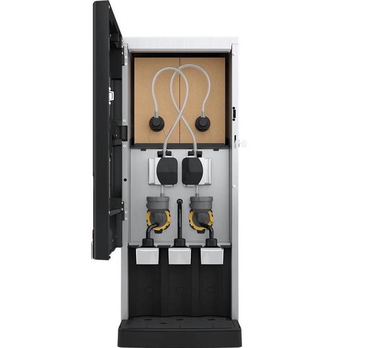 Rivero Turbo 203 peut préparer deux boissons chaudes différentes en même temps. Choisissez vos deux mélanges de café haut de gamme préférés dans Bag-In-Box. En outre, la machine sert également de l'eau chaude par une sortie séparée.