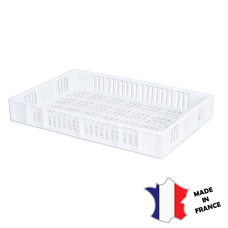 Caisse ajourée 600 x 400.¤ Conçue pour le stockage d'aliments délicats.¤ Fond et parois ajourés.¤ Renforts latéraux.¤ Compatible avec les socles 4 et 6 roues GILAC. Lire plus