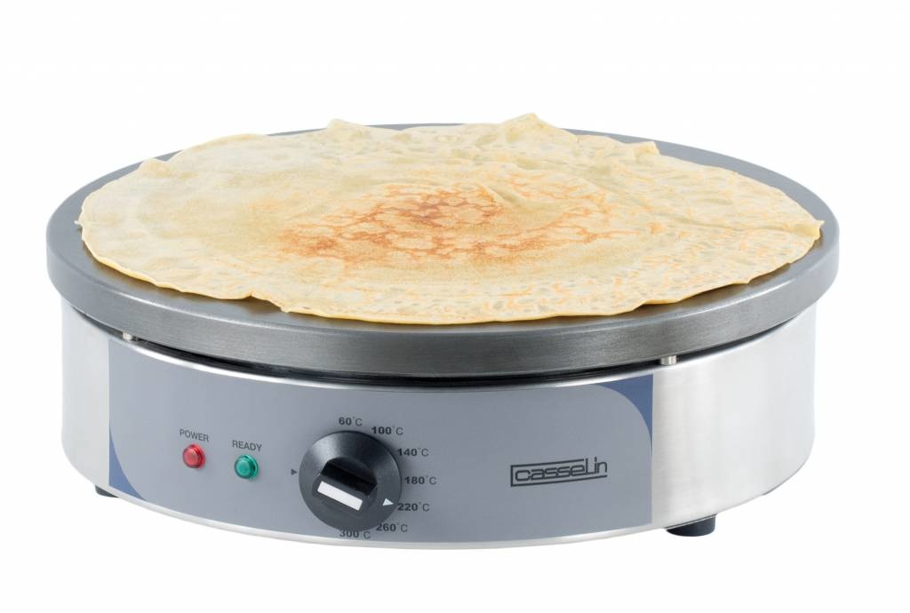 Un crêpière ronde en acier inoxydable de la marque Casselin. La plaque en fonte est Ø350mm, ce qui est parfaite pour une utilisation professionnelle!