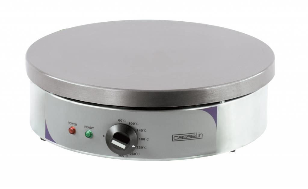 Un crêpière ronde en acier inoxydable de la marque Casselin. La plaque en fonte est Ø400mm, ce qui est parfaite pour une utilisation professionnelle!Spécifications: