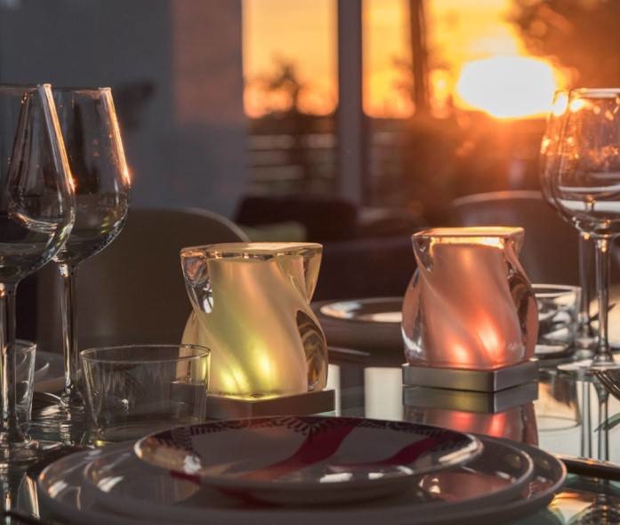 Voici un set de 2 centres de table TWISTY C12 idéal pour une décoration chic! Personnalisez votre ambiance en choisissant la couleur souhaitée ! Optez pour sa lumière LED multicolore fixe ou changeante! Ces centres de table sur batterie se chargent par induction