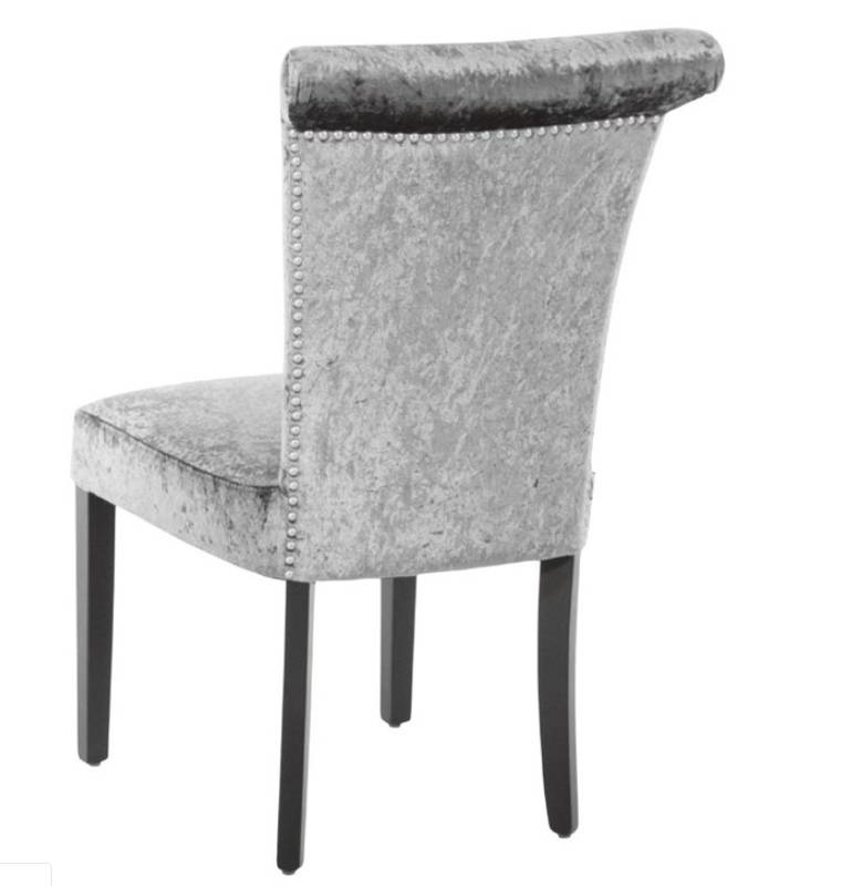 Chaises de style baroque tendance avec finition capitonnée en velours ras et clous au dos. Conviennent pour les salles à manger ou comme sièges dans les chambres d'hôtels. Tissu 440 g/m2 et clous en laiton vieilli.
