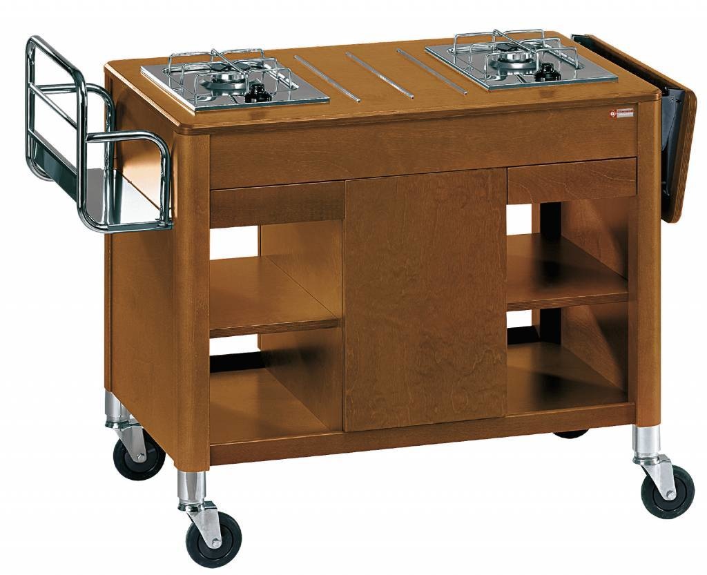 Chariot de Flambage | 2 Feux Gaz | "Noyer" | Sans Bonbonne n'y Détendeur | 1115/1320x550x810(h)mm